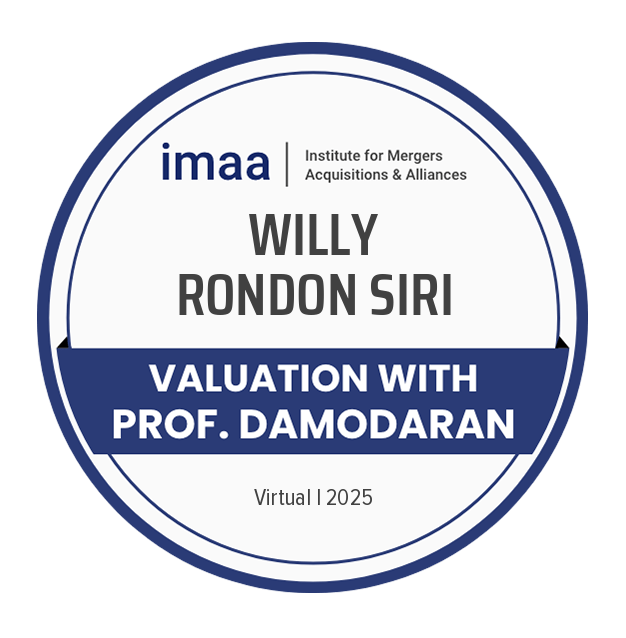 We hereby confirm that Willy Rondon Siri has participated in the valuation training with Prof. Aswath Damodaran in 2025